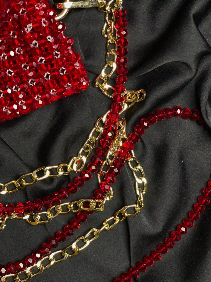 Shimmering Crystal Burgundy & Rose Pink Bag (Medium)